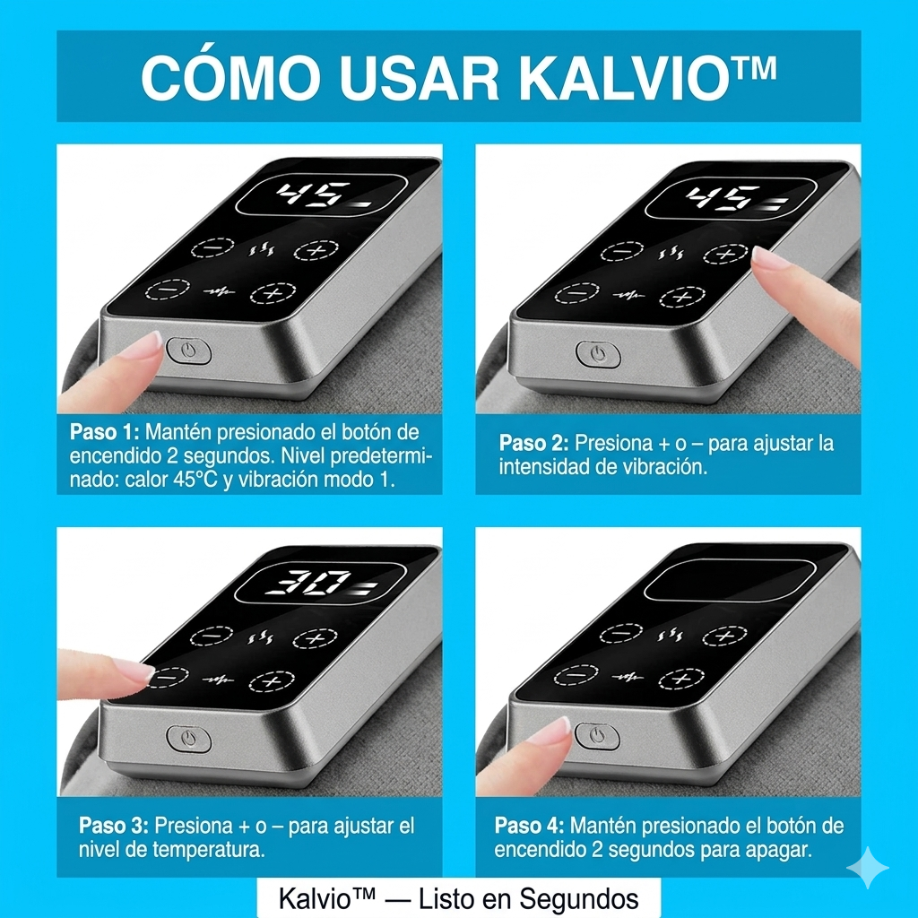 Si el médico ya te diagnosticó artritis o artrosis y sientes que cada año empeora un poco más — Kalvio™ es el apoyo diario que más personas en tu situación incorporan a su rutina. El calor profundo y la vibración reducen la rigidez, relajan la articulación y mejoran la movilidad sin necesidad de medicamentos ni visitas constantes.
